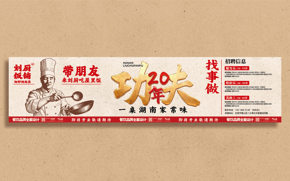 刘厨饭铺 / 湘野湖南菜 一个在广东做了快20年湘菜的老师傅, 从做宵夜,到做早餐, 从做快餐,到做正餐, 20年的光阴,成就了20年的功夫。 刘厨饭铺, 也到了应该品牌化快速发展的阶段。 让湖南人吃到乡愁, 让广东人爱上湘味, 这是品牌的坚持,更是刘厨的温度。 Project:刘厨饭铺 / 湘野湖南菜 Work:餐饮全案设计 Place:广东-东莞 - Design:中世锐意设计 x 如来空间创意 -